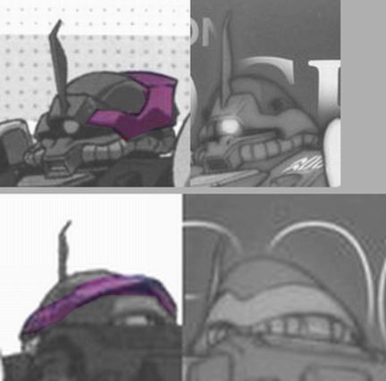 モノクロ部だけ見ると、両機の頭部の形が近いものになりました。
