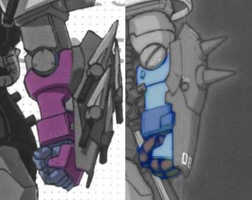 この微妙な違い…些細な事なんですけど気になる。なぜこんなことを?<訂正>黄色丸部、設定画では盾の一部でしたが、立体物…つまり、ジオノグラフィでは既に