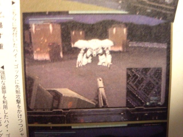 稲垣「ハイ・ゴッグの動きは、OVAの『0080』を見たときから絶対にポリゴンで再現したい!と思っていました。もっとモーションをつけたいぐらいです。あ、でも誌面からじゃわからないですね(笑)。とにかく、一日でも早くユーザーのみなさんに見て、プレイしてもらうためにがんばっています。期待して待っていて下さい」・気になった点を幾つか…