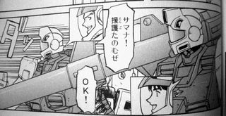 フィリップ機、サマナ機と思われるジム・コマンドが登場。