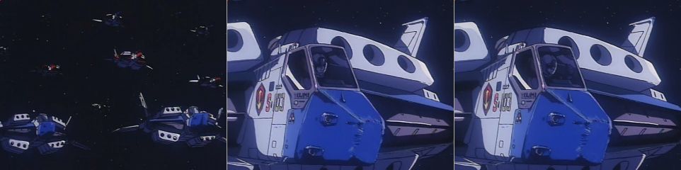 ①ムービータイトルは『一年戦争勃発』。それまで設定上のものであった「一週間戦争」が初めて映像化されました。ルウム戦役のシーンに、セイバーフィッシュに乗るユウ・カジマが登場します。この頃のユウについてはもともと特に設定はありませんが、小説版ではトリアーエズのパイロットとしてルウム戦役に参戦していました。