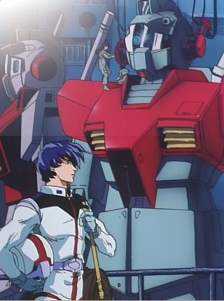 (公式設定としてアリかどうかは別として、この画を根拠として「ユウ・カジマは専用の青いジム・コマンドに乗っていた」とする話もあります)