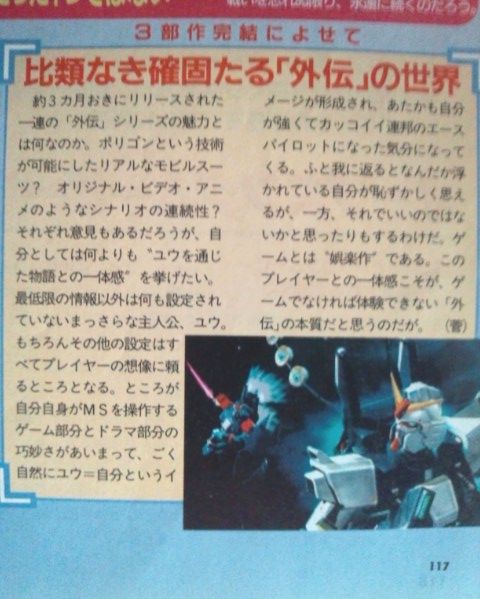 次の写真は、1997年のセガサターンマガジンより「機動戦士ガンダム外伝3 裁かれし者」の攻略記事。最終回でのコメントです。