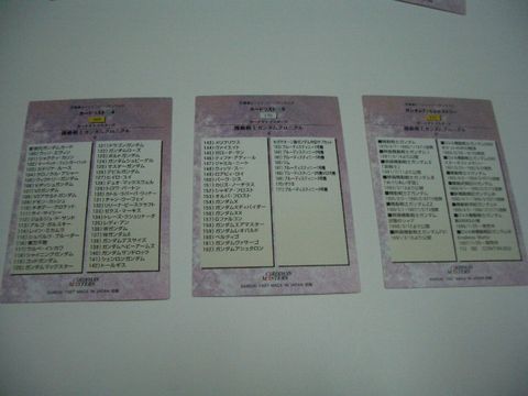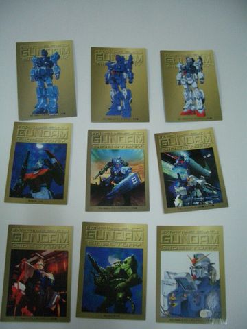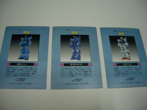 TV、OVAなど歴代のガンダムシリーズのワンシーンやイラストをカード化したもので、当時発売中だったブルーディスティニーも収録されました。