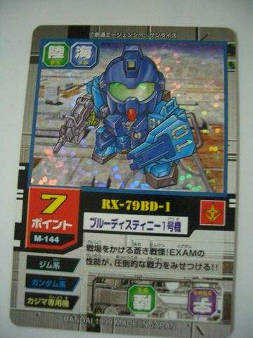 今回は、1999年に発売された対戦型トレーディングカードゲーム「SDガンダム モビルパワーズ」よりブルー1号機を紹介。