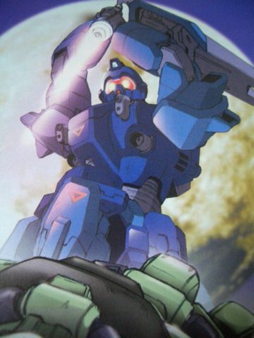 『この写真は、一年戦争当時、ジオン公国軍の兵士達に「蒼い死神」と呼ばれ、恐れられた幻のMSを写したものと言われている』