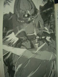 こちらは原作ゲームの第3巻、「裁かれし者」の取り扱い説明書に載っているイラスト。ヒートサーベルはグフのものと同じデザイン。前回指定した分類では”サーベルC”になります