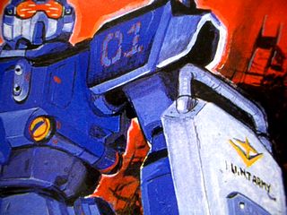 このイラストはブルー1号機の初期設定カラーリングなのではないだろうか?イラストの日付から察するに、漫画版を担当する高山瑞穂氏のもとには、おそらくかなり早い段階からブルーの設定画が渡っていたのだろうと思われる。このイラストも、初期設定画をもとに描かれたのだろう。