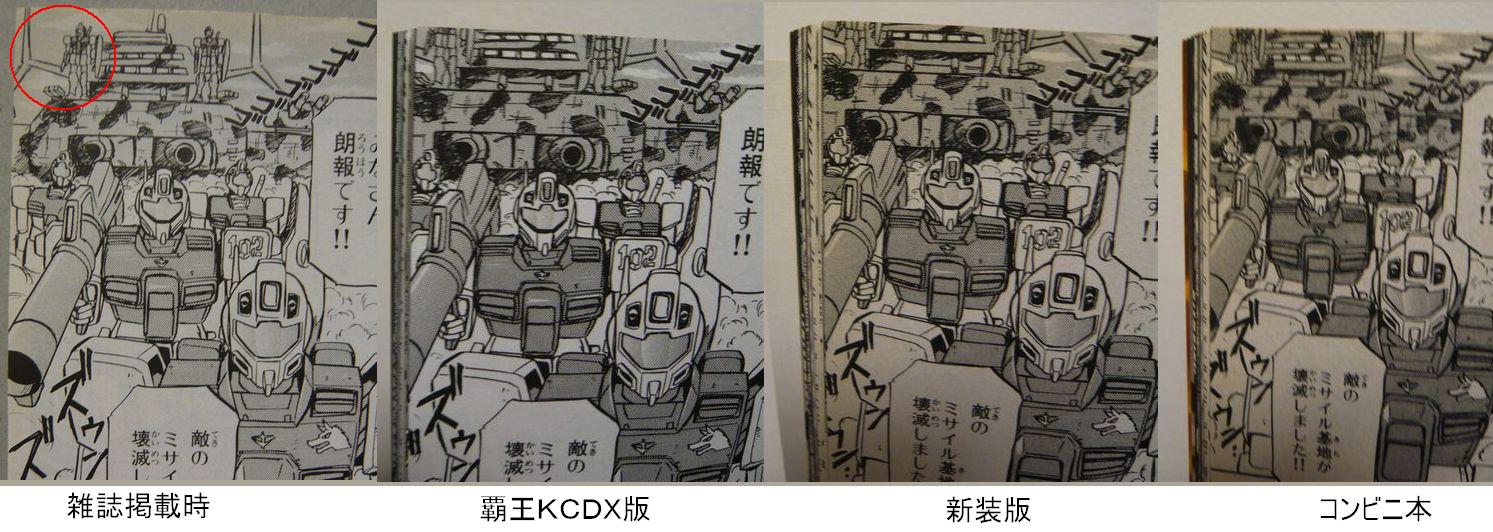 左より雑誌掲載分、旧バージョン、新装版、コンビニ本のそれぞれの同一シーン。
