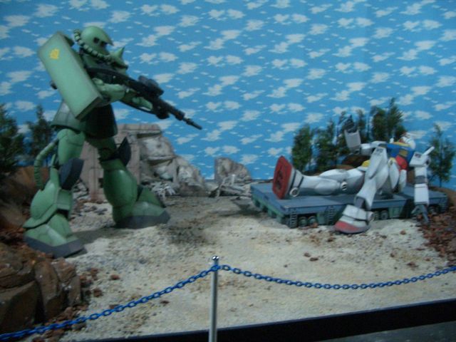 第1話「ガンダム大地に立つ!」の名シーンを再現。