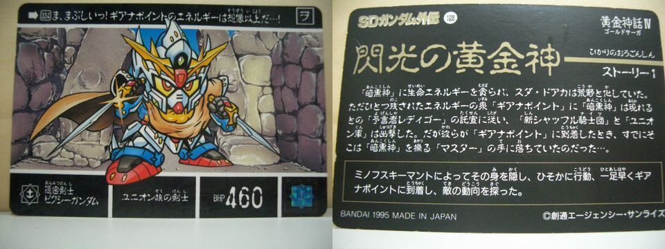 僕もSDガンダムにハマったクチですが、シリーズ後期あたりは全然知らず、ピクシーが登場していたことも知りませんでした。これは、以前カードショップで偶然見つけた1枚。入手困難という意味では結構貴重ではないでしょうか?