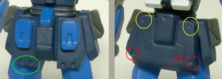 GFF、HGUCでは灰色に塗られている箇所ですので、気になった方もいるのではないでしょうか。