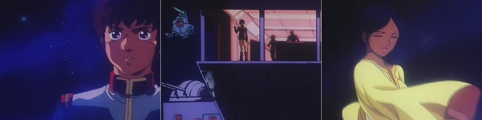 ①ムービータイトルは『一年戦争勃発』。それまで設定上のものであった「一週間戦争」が初めて映像化されました。ルウム戦役のシーンに、セイバーフィッシュに乗るユウ・カジマが登場します。この頃のユウについてはもともと特に設定はありませんが、小説版ではトリアーエズのパイロットとしてルウム戦役に参戦していました。
