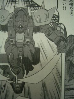 こちらは原作ゲームの第3巻、「裁かれし者」の取り扱い説明書に載っているイラスト。ヒートサーベルはグフのものと同じデザイン。前回指定した分類では”サーベルC”になります