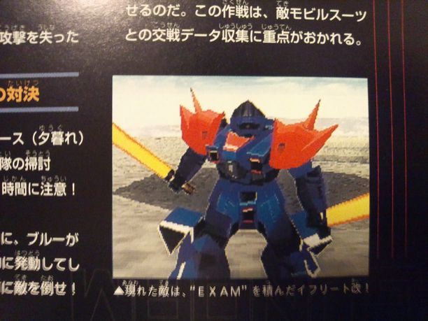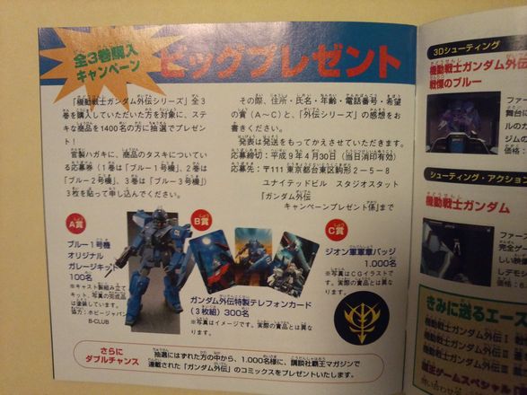 (ブルー1号機のゴーグルが赤くなっていること注目なんですが、その辺の考察は今回は割愛。またの機会に…。また、外伝3に関するイラストがありませんが、B-CLUBにも外伝3イラストはありませんでした…確か。一応、確認はしたのですがイマイチ自信がありません。96年、97年当時のB-CLUBをお持ちの方、よろしければ情報プリーズ!)