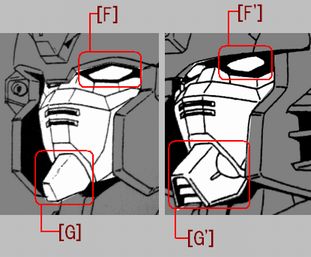 (なお、多角形パーツはブルーは七角形、陸ガンは六角形。