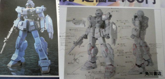 そして、2007年秋。それまではあくまでカトキ版ブルー1号機の装備であったサプレッサー付き100㎜マシンガンが、本編のブルー1号機が使用していた、という解説で登場しました。